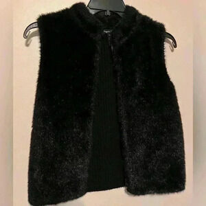 Designer Originals Women’s Black Faux Fur Vest Knit Back Size Petite Medium PM