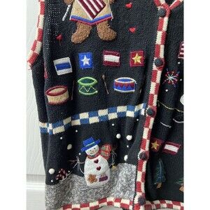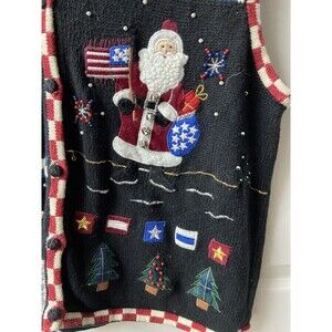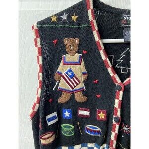 Designer Origional Studio Womens Large Black All Holidays Knit Decorated Vest