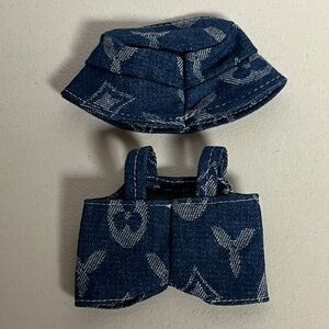 Designer Overalls Bucket Hat 2 Piece Outfit For Labubu