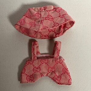Designer Overalls Bucket Hat 2 Piece Outfit For Labubu Pink
