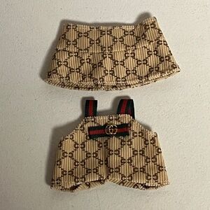 Designer Overalls Bucket Hat 2 Piece Outfit For Labubu