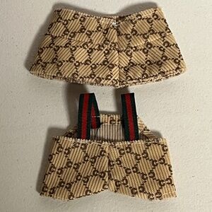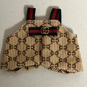 Designer Overalls Bucket Hat 2 Piece Outfit For Labubu Tan Red Green