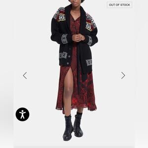 This unique cardigan is out of stock online, making it a rare find. Don't miss your chance to own this stylish and cozy piece!