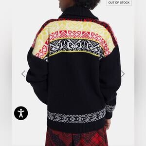 Elevate your wardrobe with this stunning patterned wool cardigan from The Kooples x Rent The Runway collaboration! This eye-catching piece is sure to turn heads and add a touch of designer flair to any outfit. Originally sold online for $355.00, this cardigan is a steal!