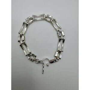 Designer Peruvian Sterling Silver 950 and 18K Gold Inlay Bracelet - 7.5”