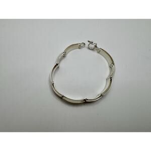 This Designer Peruvian Sterling Silver and 18K Gold Inlay Bracelet features a wave-shaped design, making it a unique and beautiful piece of fine jewelry. Handmade in Peru, this bracelet is signed by the brand Frijja and has a push lock closure for easy wear. With a length of 7.5 inches, it is perfect for occasions such as engagements, weddings, anniversaries, birthdays, and Valentine's Day. The combination of sterling silver and 18K gold gives this bracelet a luxurious and elegant look, ideal for adding a touch of beauty to any outfit.