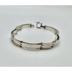 Designer Peruvian Sterling Silver 950 and 18K Gold Inlay Bracelet - 7.5”