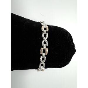 Designer Peruvian Sterling Silver 950 and 18K Gold Inlay Bracelet - 7.5”