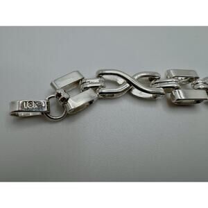 This Designer Peruvian Sterling Silver 950 and 18K Gold Inlay Bracelet features a unique wave shape design with a push lock closure. Handmade in Peru, this bracelet is crafted with sterling silver and 18K gold, showcasing a two-tone color. Perfect for special occasions like engagements, weddings, anniversaries, and birthdays, this bracelet exudes beauty and artistry. Signed by the brand Frijja, this bracelet is a timeless piece with a vintage touch that adds elegance to any outfit.