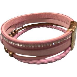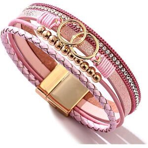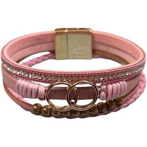 Designer Pink and Gold Interlocked Rings Braided Multi-strand Bracelet