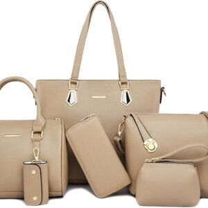Nylon 6pcs purse set designer handbags for women khaki purse color matching design, interpretation of a simple sense of fashion. Multi layered interior design, you can easily in any situation.Durable large tote bag can hold 14 inch Laptop or tablet,A4 documents or books, and your favorite high heels.Satchel shoulder bag can hold coin purse,long wallet,sunglasses,umbrella,cosmetics and other items. clutch purse can hold your keys,lipstick,and other little items;