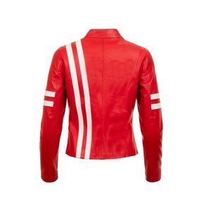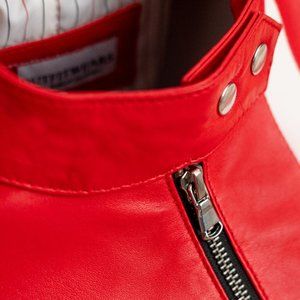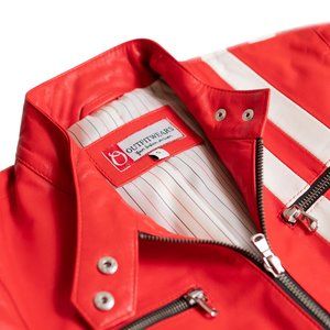 Designer Red Leather Racer Jacket