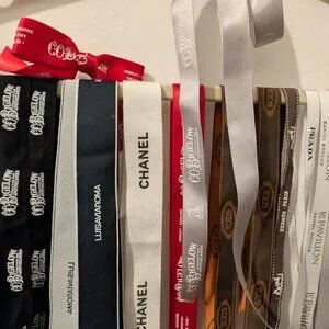 Designer Ribbon collection, In very good clean condition. Ribbons from Istetan, Prada, Tods,Bigelow,Hermes, Chanel, Mr. P, Le Pavillon, Venchi, The Brick, Luisaviaroma,