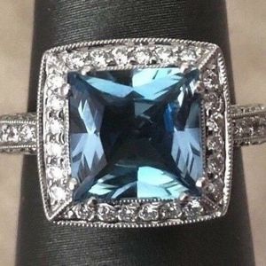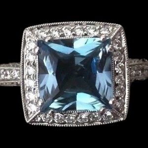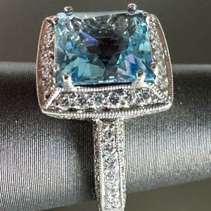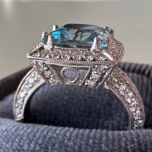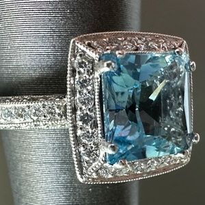 Beautiful Diamond & Aquamarine 18k WG Ring