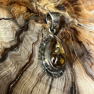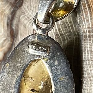 Designer SJ Citrine Sterling Silver Vintage Pendant Necklace