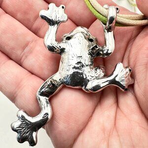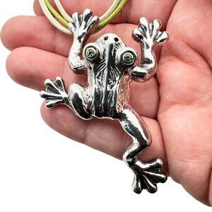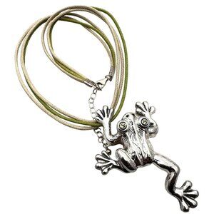 Designer SX Womens Necklace Sterling Silver Green Peridot Frog Pendant on Cord