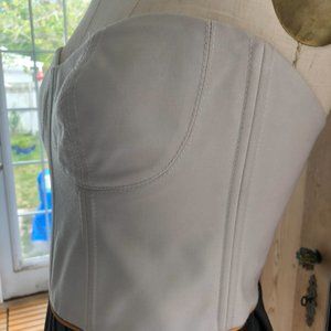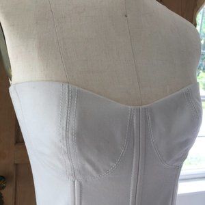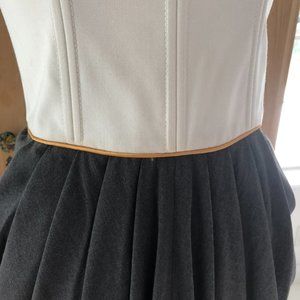 Cotton and mens suit fabric combined in a very flattering shape and fit! Ankle long it almost wants to be worn with a sassy booty style. Definitely one of a kind!