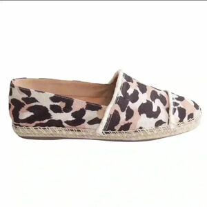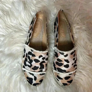 Designer Schutz Ohanna Leopard Fringe Canvas Espadrilles Loafer Flats Size 8.5