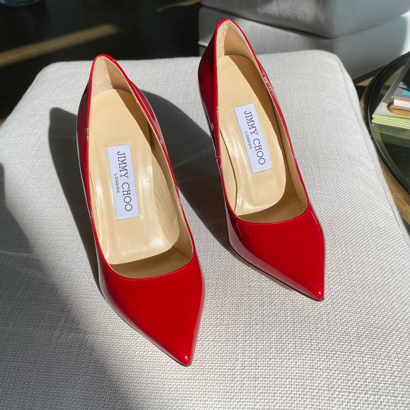Beautiful patent red Jimmy Choo 4 1/2 inch heel.