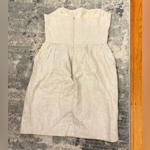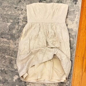 Designer Authentic Shoshanna Evening Party Linen Blend Cocktail Strapless Mini Dress, SZ 0. Shimmery golden burlap tan cream color. EUC- Worn once to my brother’s wedding - back zipper clip loose. Has pockets and is fully lined with back zip. Needs to be steamed. Offers welcomed! Would be perfect for homecoming!
