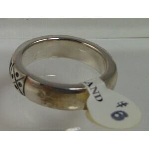 Designer Signed Sterling Silver Band Ring Vintage Black 925 Stamped Band Size 6