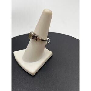 Designer Signed Sterling Silver Round Bezel Set Citrine Ring Sz 7.25