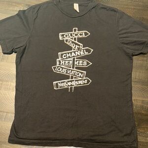 Designer Signpost Graphic Short Sleeve Cotton Tee Shirt in Black Size Large