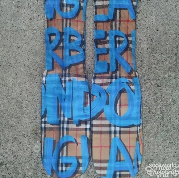 New custom made Burberry Designer socks size 6c-12 adults comment your size when purchasing all socks are front and back fast shipping great quality kids and adults