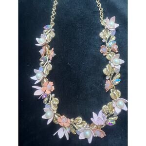 Stella + Ruby Womens' Gold Pink Valentine Floral Necklace W1006 Stella & Ruby necklace featuring a gold-plated chain and floral embellishments. The necklace has alternating pink and white flowers, each with a faux pearl center. Gold leaves and iridescent crystals accent the floral design. Approx. 20" Originally $176! Great Deal! Won't last long.