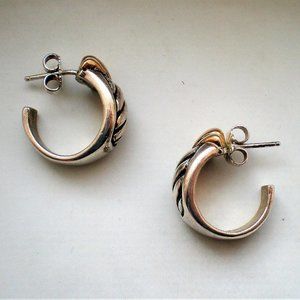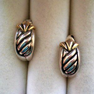 Designer Sterling Silver 925 14K Yellow Gold Pierced Post Earrings