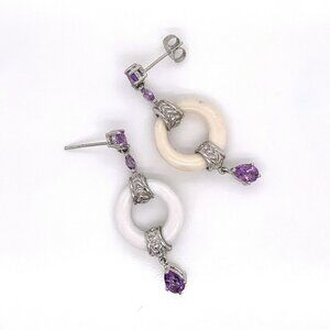 Designer Sterling Silver & Amythest Pierced Post Back Earrings! 144