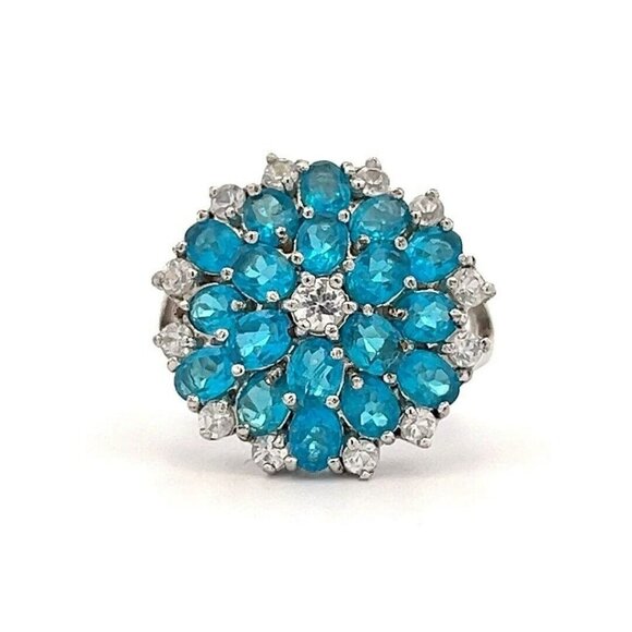 Designer Sterling Silver, Clear & Blue Cubic Zirconia Size 8 Cocktail Ring! 58