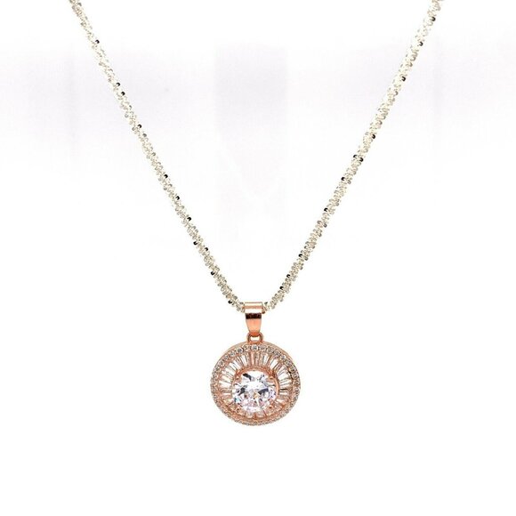 Designer Sterling Silver & Cubic Zirconia Rose Gold Plate 18” Necklace! 31