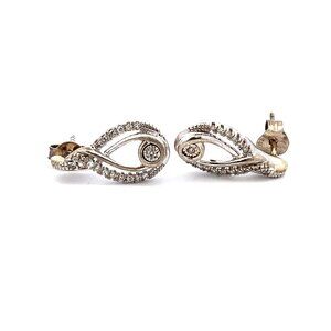 Designer Sterling Silver, Micro Pave Diamond Pierced Twist Earrings! 33