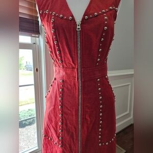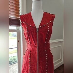 Designer Studded Red Zip Up Dress - Diane Von Furstenberg