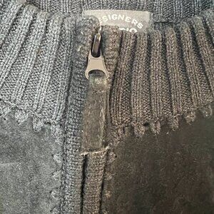 Designer Studio Originals Vintage Leather Suede Ribbed Black Cardigan Sweater XL