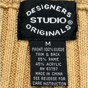 Elevate your wardrobe with this unique Designer Studio Originals sweater vest! This size medium vest features a stylish combination of soft suede and cozy cable knit. Perfect for layering and adding a touch of sophistication to any outfit. Don't miss out on this must-have piece!