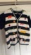 Black and white striped cardigan with tennis motifs. Features colorful embroidery and buttons.Tennisprep tenniscore Us Open