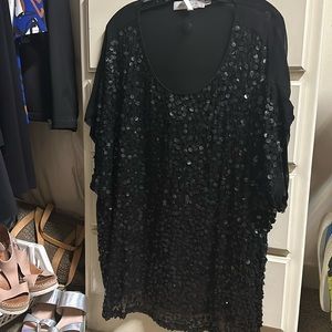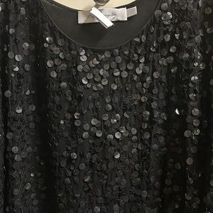 Tags Los Angeles sequins tunic with rounded collar and cap sleeves just in time for the holidays.