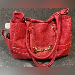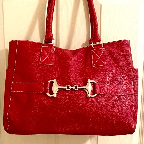 Red, Pebble Faux Leather Tote