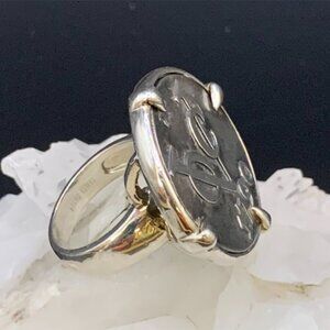 A large, impressive ring by high end jewelry designer Tracey Mayer, this lovely ring features a 1790 Dutch coin held high in its prong setting. This is such a great find. Retail on this item is $660. You can have this unique fashion statement for a much more attainable price!
