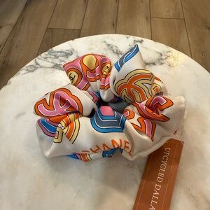 This was a designer silk scarf turned into a hair scrunchie or purse accessory.