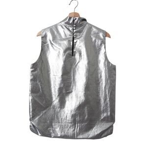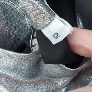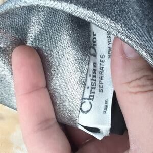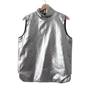 vintage Christian Dior separate size 12. women's metallic silver blouse sleeveless mock neck lined shiny have slits on the side and button at neck measurements length 26 flat across underarm 20 in. Excellent vintage condition!