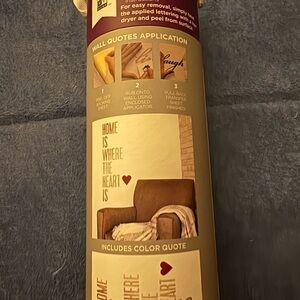Stylish wall lettering with a heart design. Perfect for home decor. Brand new. Never used. Wood grain texture. Easy to use with instructions. Adhesive. Comes from smoke and pet free home.