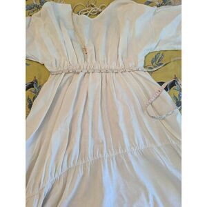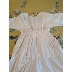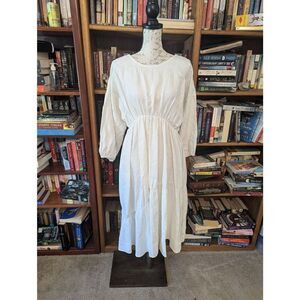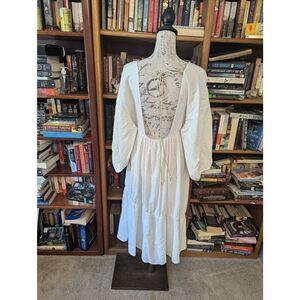 Designer Women’s XS White Silk Linen Blend Cottage Peasant Midi Dress USA