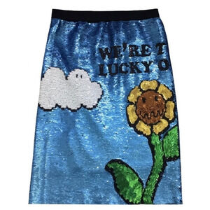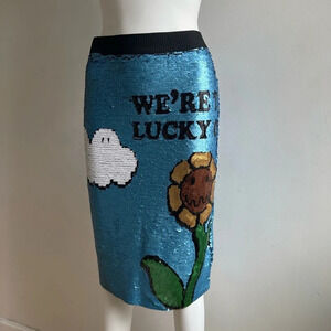 Designer Wonan’s Pencil Skirt Smiley Clouds Size Small Sequin Midi Lined