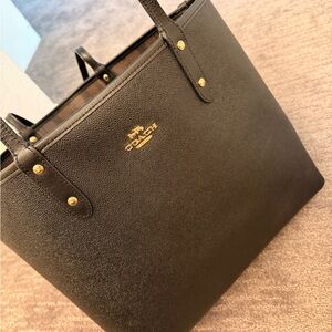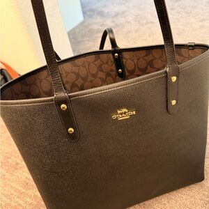 3. Reversible coach tote bag. One side is black the other is brown with C pattern