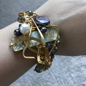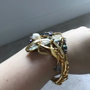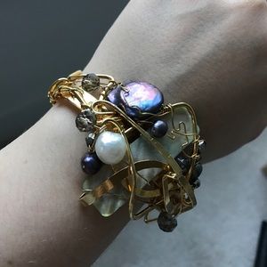 Designer bracelet one of a kind gold stone pearls