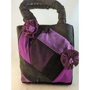 Add a touch of designer charm to your evening attire with this handmade crazy quilted evening bag. The bag features a gorgeous purple and black exterior, complemented by a pretty pink/purple lining, and is made from luxurious velvet and assorted materials. Measuring 6 inches in height, 5.5 inches in width, and 1 inch in depth, the bag is perfect for holding your phone and other essentials for a night out.