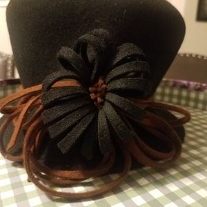 Andre of Canada black-terra cotta 100% wool hat with flower and swirl cording. NEW.. Liquidating all winter inventory. Below wholesale.